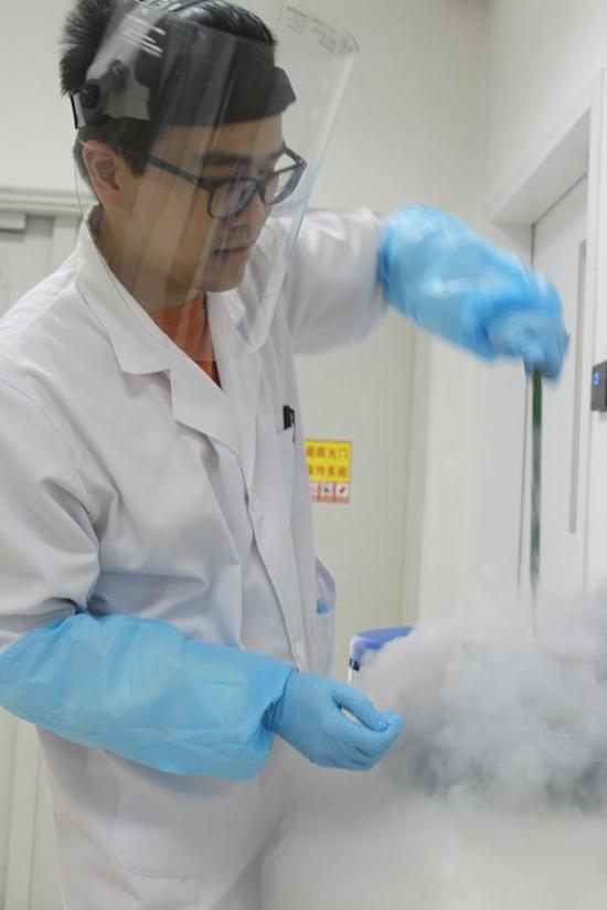 研究人員從液氮罐中取出干細(xì)胞。